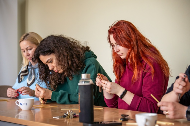 Edukacijos metu dalyviai ne tik susipažino su šiaudų kaip kūrybinės medžiagos subtilybėmis, bet ir patys išbandė rankų darbą – kūrė simbolinius paukštelius. Jaukią atmosferą kūrė prasprogusios beržų šakelės, rankų darbo šiaudiniai dirbiniai ir trumpa įžanginė meditacija, lydima švelnaus šiaudų šiugždėjimo.