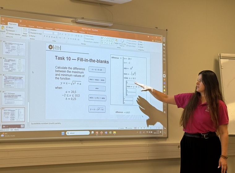 „Šioje intensyvioje programoje vedžiau algoritmų dirbtuves Designing Algorithms with Flowcharts: From Everyday Problems to Code (liet. Algoritmų kūrimas naudojant blokines schemas: nuo kasdienių problemų iki kodo). Kadangi tarptautinėje grupėje susibūrė skirtingų studijų pakopų ir patirčių studentai, pradėjau nuo pagrindinių sąvokų (algoritmas, žingsnis, ciklas, įvestis / išvestis) ir perėjau prie algoritmų konstravimo (if sąlygos, for / while ciklai) taikant blokines schemas ir praktinius pavyzdžius. Ypač įsimintini buvo studentų šalių ir institucijų pristatymai, pasakojimai apie ryšius su matematika.