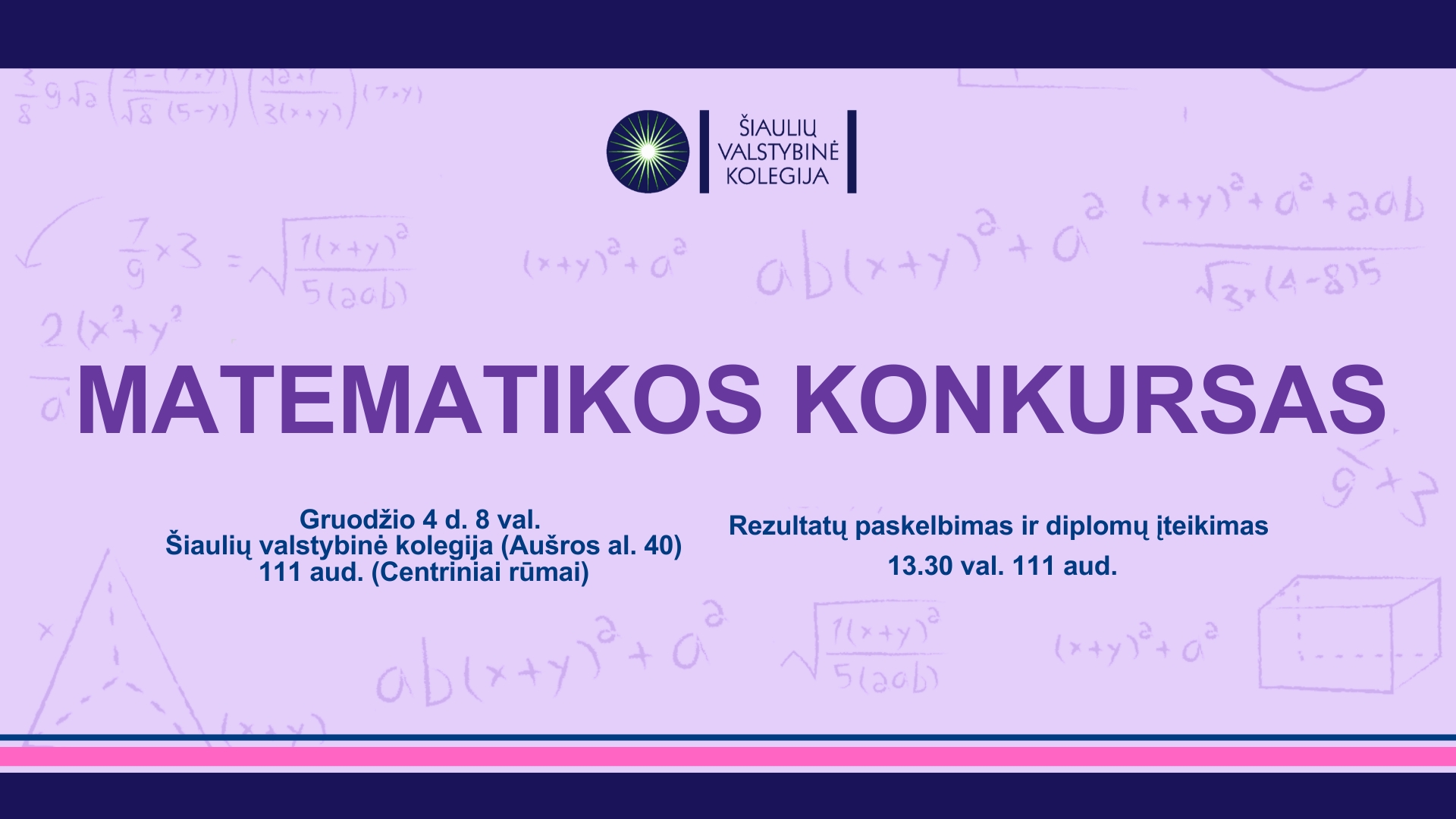 Kiekvienų metų pirmąjį žiemos ketvirtadienį Šiaulių valstybinėje kolegijoje vyksta matematikos uždavinių sprendimo konkursas. Jame dalyvauja įvairių studijų programų pirmo kurso studentai.