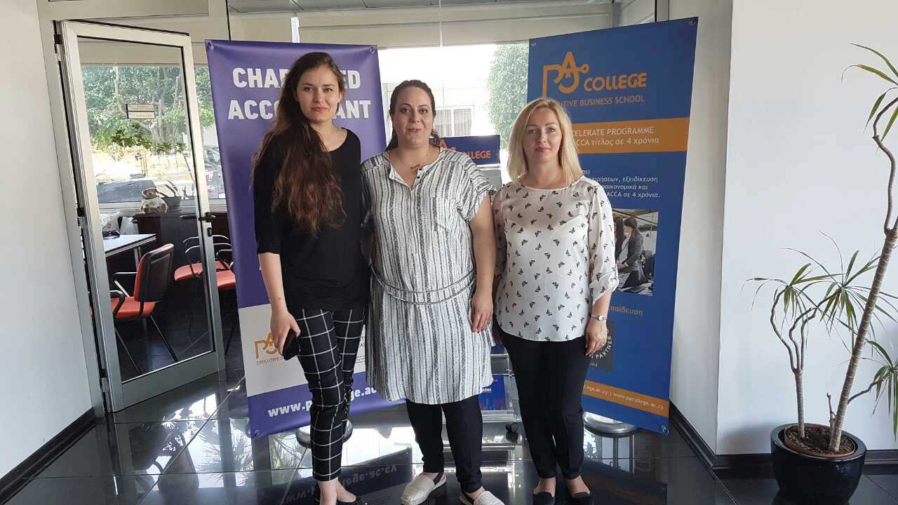 Gegužės 23–25 dienomis kolegijos ekonomistė Kristina Gideikienė, Kanceliarijos skyriaus vedėja Audronė Ožalienė bei Tarptautinių ryšių ir projektų valdymo skyriaus koordinatorė Gina Ožekauskaitė pagal Erasmus+ mainų programą lankėsi P. A. College Kipre.