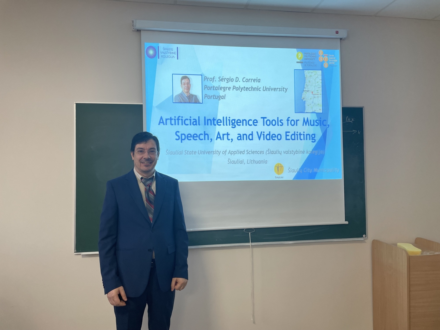 Lapkričio 23 d. prof. Sérgio Duarte Correia skaitė viešą paskaitą „Dirbtinio intelekto įrankiai muzikos, kalbos, meno ir vaizdo redagavimui“. Paskaitos metu kalbėta apie dirbtinio intelekto atsiradimo istoriją, raidos progresą ir naudojimo skirtingose meno srityse galimybes. Dėstytojas demonstravo meninių atvaizdų kūrimą naudojant programinę įranga „DALL-E“. Paskaita užbaigta diskusija apie dirbtinio intelekto naudą, perspektyvas ir iššūkius. Atviroje paskaitoje dalyvavo Šiaulių valstybinės kolegijos dėstytojai, administracijos darbuotojai, studentai.