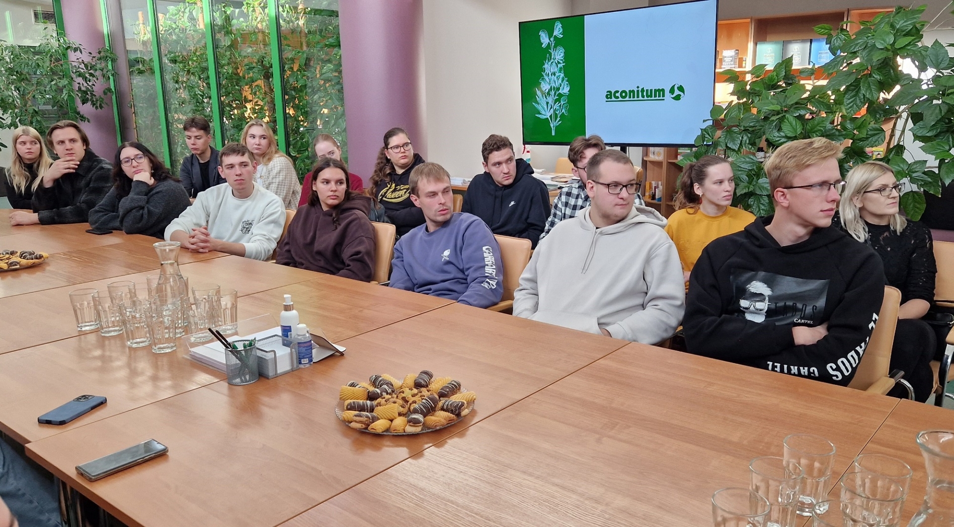 Spalio 19 d. projekto dalyviai vyko į Kaune esančią UAB „Aconitum“. Tai viena iš Lietuvoje lyderiaujančių maisto papildų gamintojų. UAB „Aconitum“ nuo 1999 m. kuria ir gamina augalinius vaistus, biomedicininius preparatus ir maisto papildus. Įmonė siekia aukščiausios kokybės, yra inovatyvi, subūrė srities profesionalų komanda. Net 70 procentų bendrovės darbuotojų yra įgiję aukštąjį išsilavinimą, o 10 procentų turi daktaro laipsnį.
