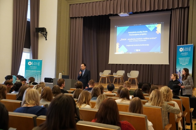 Rugsėjo 13 d. startavusio Valstybinio studijų fondo finansuojamo projekto, skirto plėtoti studentų naujų žinių kūrimo bei operavimo moksliniais tyrimo metodais kompetencijas, atliekant taikomuosius mokslinius tyrimus, rezultatai pristatyti baigiamojoje studentų mokslinėje-praktinėje konferencijoje.