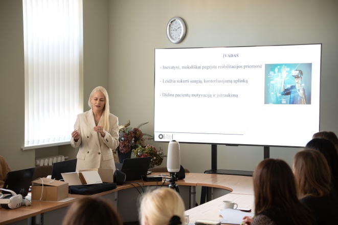 Projekte „Virtualios realybės technologijų taikymas funkcinei reabilitacijai“ sukurta Virtualios realybės pagrindu veikianti reabilitacijos koncepcija. Parengti terapinių scenarijų principai, sukurti pirminiai virtualios aplinkos modeliai bei pratimų struktūra. Tai sudaro tvirtą pagrindą tolimesniam sprendimo kūrimui ir taikymui medicinos praktikoje.