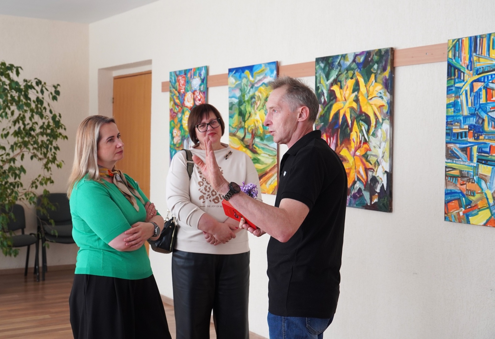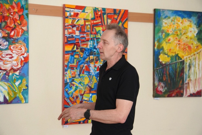 Tapytojas Gintaras Daukša pasidalijo kūrybinio proceso užkulisiais, papasakojo, kaip gimsta idėjos jo kūriniams. Parodą pristatė filosofas, Šiaulių valstybinės kolegijos lektorius Jurgis Dieliautas.