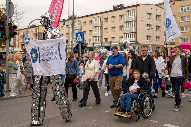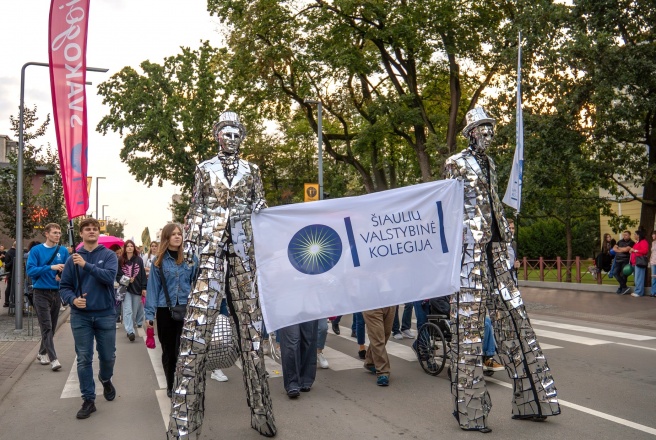 Miesto šventės renginiuose kvietėme aktyviai dalyvauti ir Šiaulių valstybinės kolegijos bendruomenės narius. Rugsėjo 12-osios vakarą su gausiu būriu šiauliečių kolegijos atstovai dalyvavo šventinėje eisenoje. Kaip skelbia organizatoriai, šiemet tradicinė eisena buvo rekordiškai gausi – joje žygiavo beveik 7000 dalyvių iš 108 įstaigų, o eiseną pratęsė įspūdinga motorizuota kolona – 250 transporto priemonių iš 40 organizacijų. Eisenoje dalyvavę šiauliečiai ir miesto svečiai, pasipuošę vėliavomis, įvairiais spalvingais akcentais, sukūrė įsimintiną reginį, liudijantį bendrystę ir miesto šventės gyvybingumą.