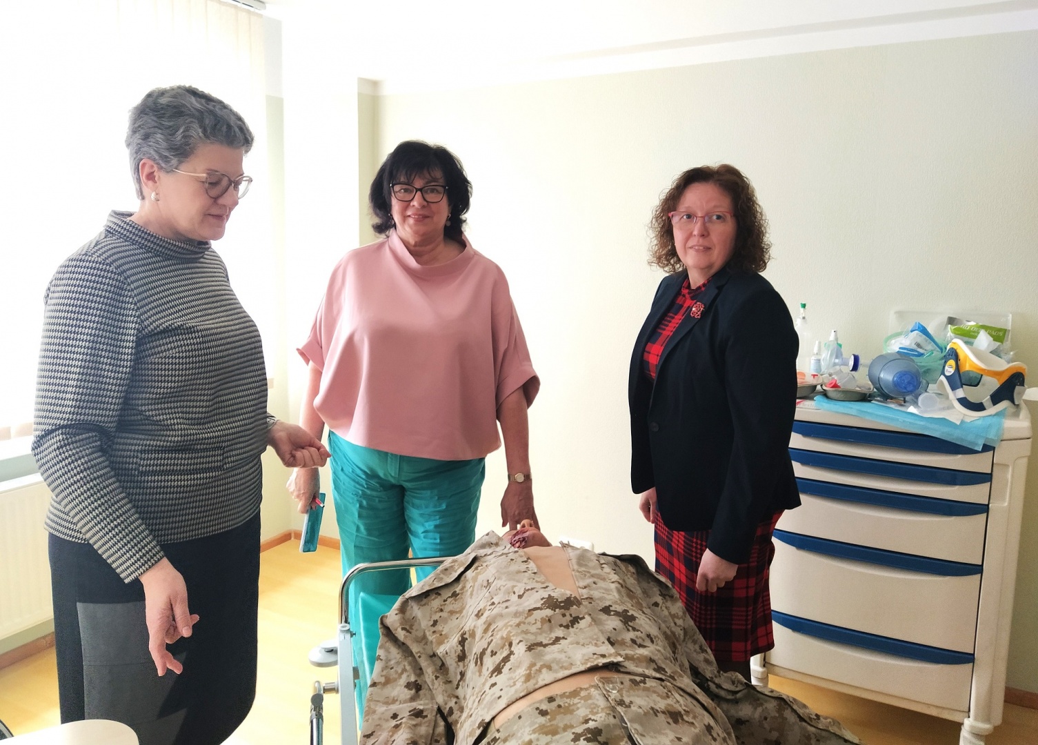 Direktoriaus pavaduotoja ugdymui Sarmīte Villere ir mokymo programų vedėja Linda Alondere supažindino su veiklomis 2023 m. įkurtame ir sertifikuotame Karo medicinos mokymo centre. Buvo vykdomi praktiniai užsiėmimai, apžiūrėta įsigyta įranga. Kolegos yra pasirengę gydytojų padėjėjams suteikti žinių karo medicinos srityje pagal NATO standartus. Pavyzdys, kad centras sukurtas atliepiant valstybės kompleksinės gynybos sistemos sukūrimą, įkvepia ruoštis naujoms specialistų ugdymo kryptims.
