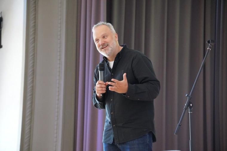 Renginyje Alumnų sugrįžtuvės 2024 turėjome ir svečią – aktorių Giedrių Savicką, kuris savo mintimis tikrai praskaidrino kiekvieno šventės dalyvio dieną. Giedrius dalinosi kasdieniais įkvepiančiais momentais, per asmeninę patirtį patikrintais atradimais ir patarimais apie tai, kaip išlikti energingiems, kūrybiškiems, turėti sveiką santykį su savimi ir aplinkiniais.